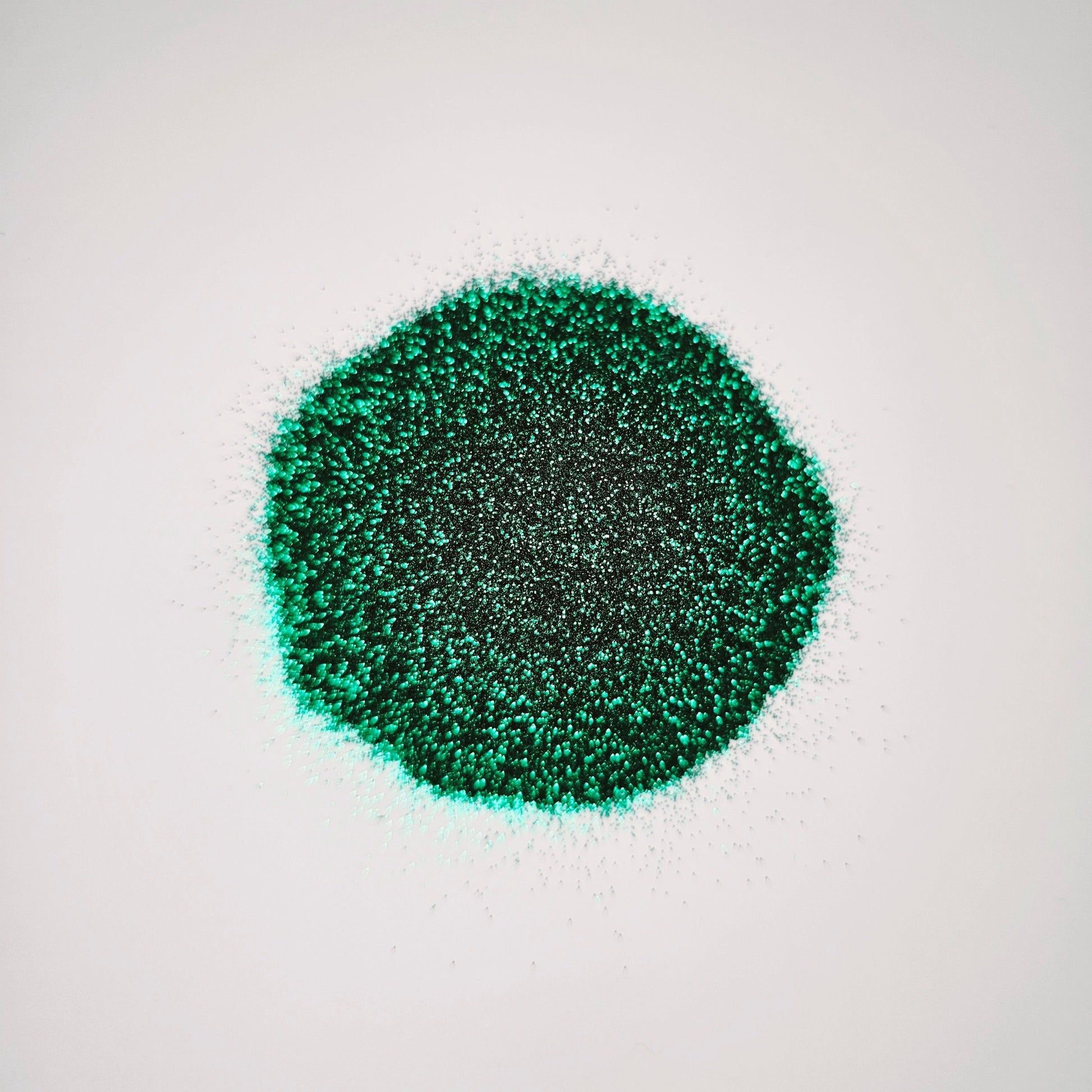This is a 3" disc-shaped glass ornament with high-quality glitter inside and a permanent decal on the outside.