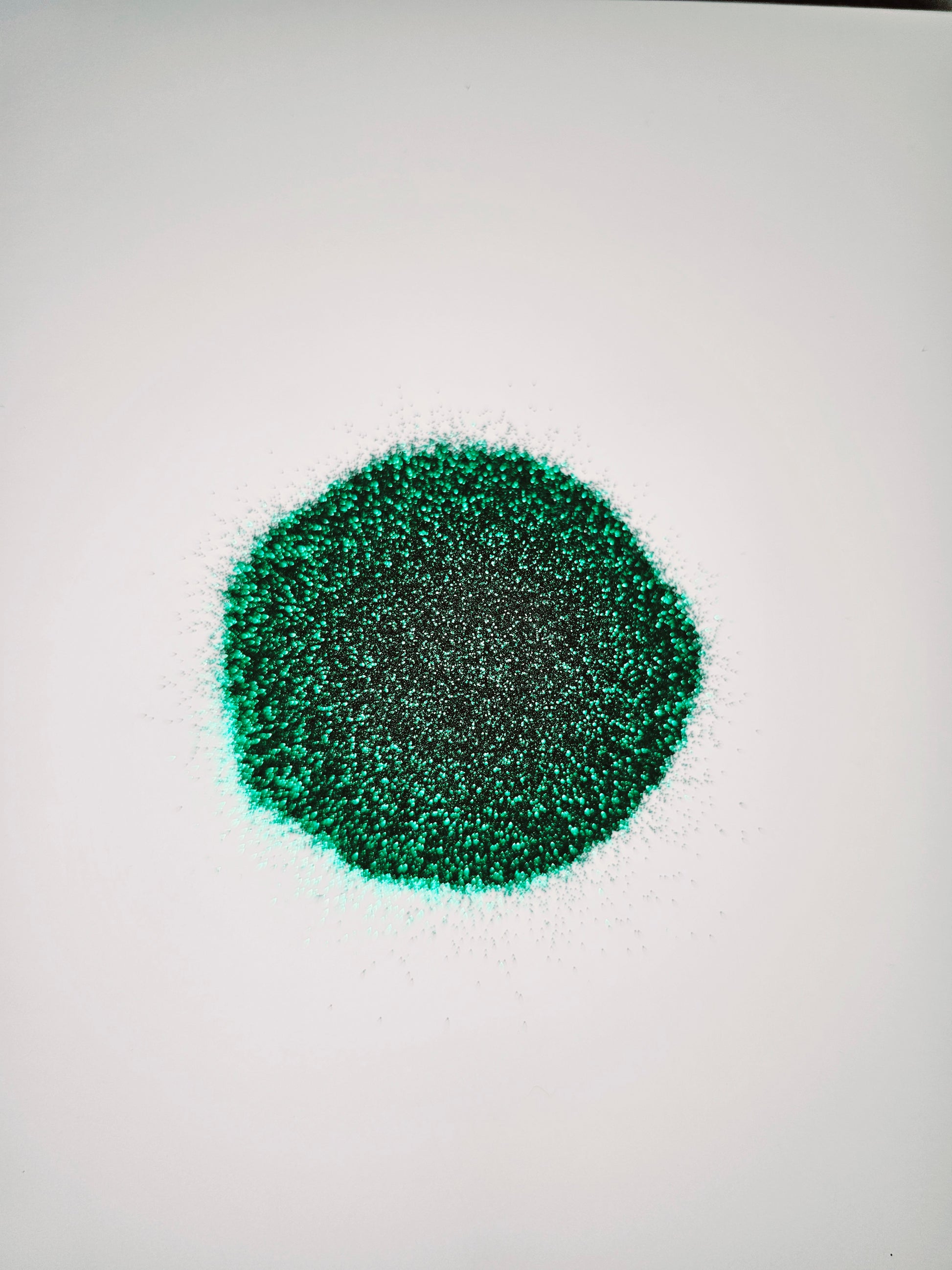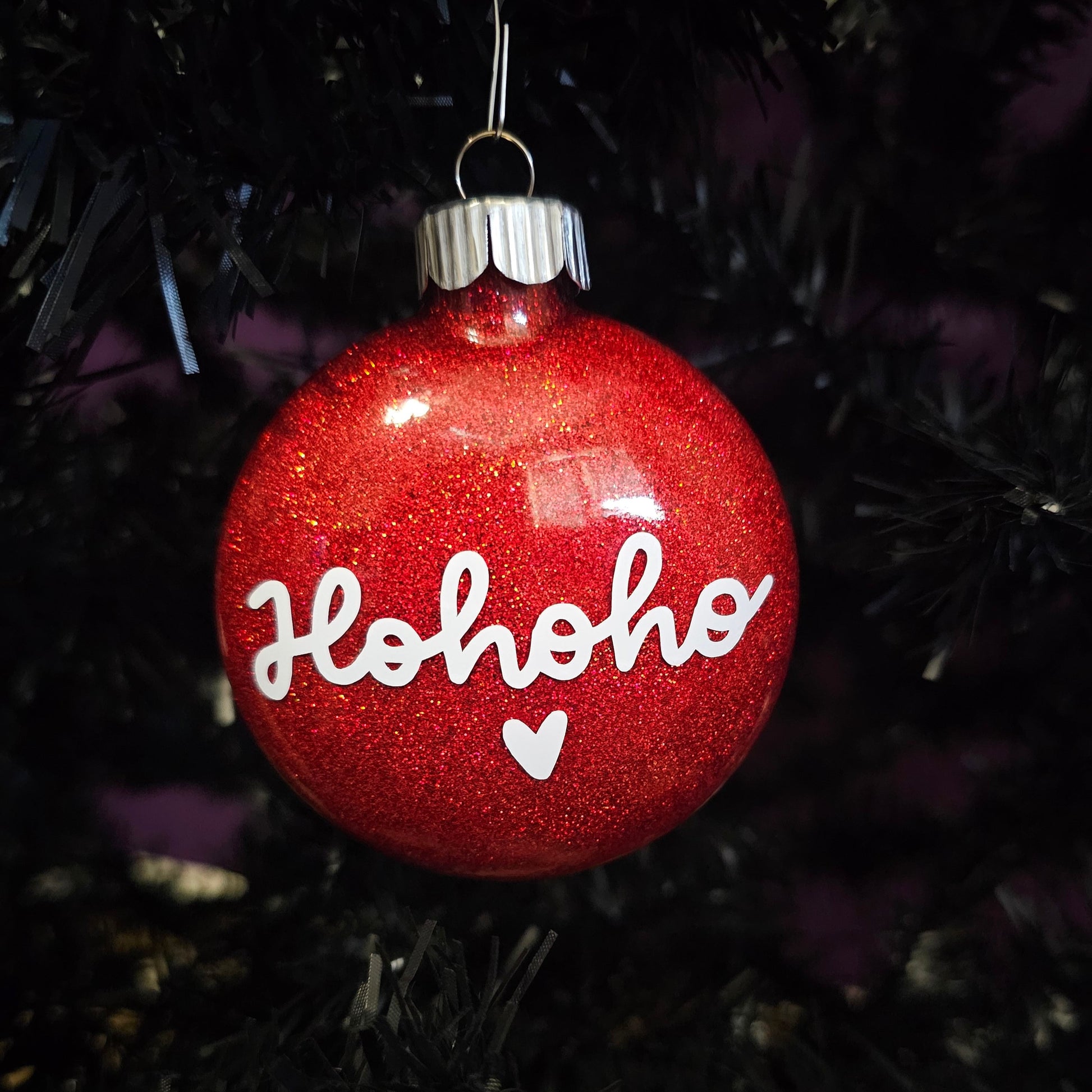 This is a 3" disc-shaped glass ornament with high-quality glitter inside and a permanent decal on the outside.